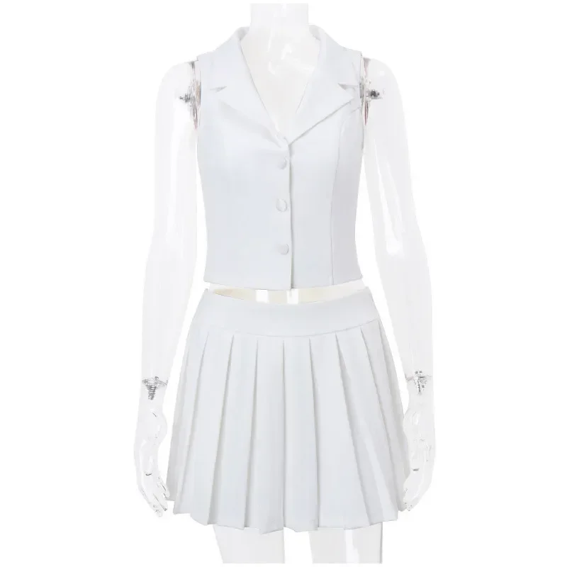 Entdecke unsere stylischen Minirock-Weste-Sets- das perfekte Ensemble für einen modernen und selbstbewussten Look. Die verschiedenen Sets bestehen aus einem Minirock und einer passenden Weste dazu. Der Minirock zeichnet sich durch seine schmeichelhafte Passform aus, die deine Beine gekonnt zur Geltung bringen. Die Sets sind stets immer ein Blickfang. Ob für einen Tag im Büro, ein Treffen mit Freunden oder eine stilvolle Abendveranstaltung.